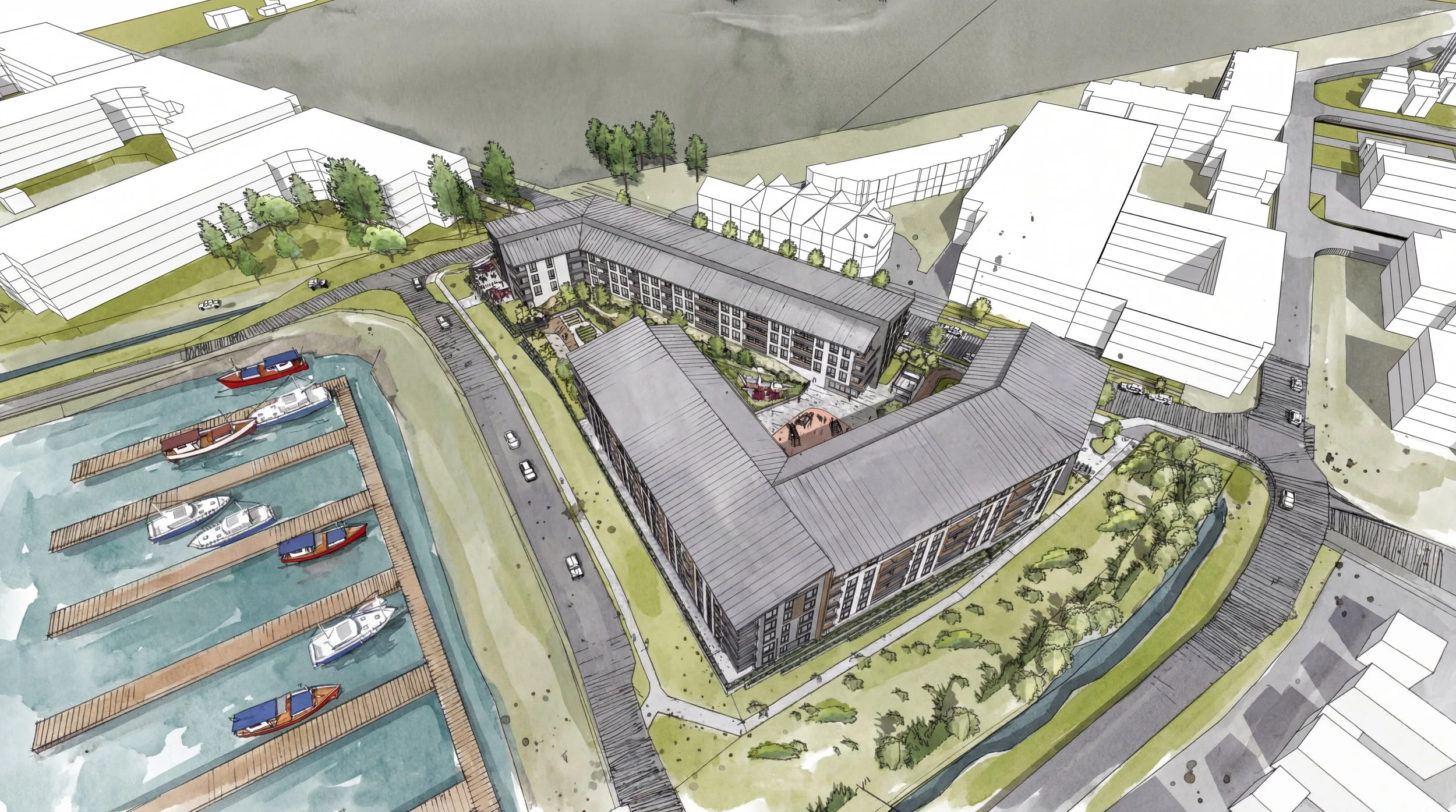 The community of Steveston, along the northern banks of the Fraser River in Richmond BC, owes its development to the abundant fishing stocks which brought food, livelihood, and prosperity to the area. For thousands of years, First Nations relied on these rich fishing grounds to support their communities. European settlers at the turn of the 20th century established industrialized practices to bring the local resource to international markets, and it’s the historical infrastructure of these practices which defines the character of the area today. Canneries, processing plants, boat repair and manufacturing, and vessel moorages line the Fraser River and create the rich tapestry of building forms, piers, rooflines, and materials which have formed the overall character of the proposed development at the foot of No.2 Road in the London Landing area of Steveston.