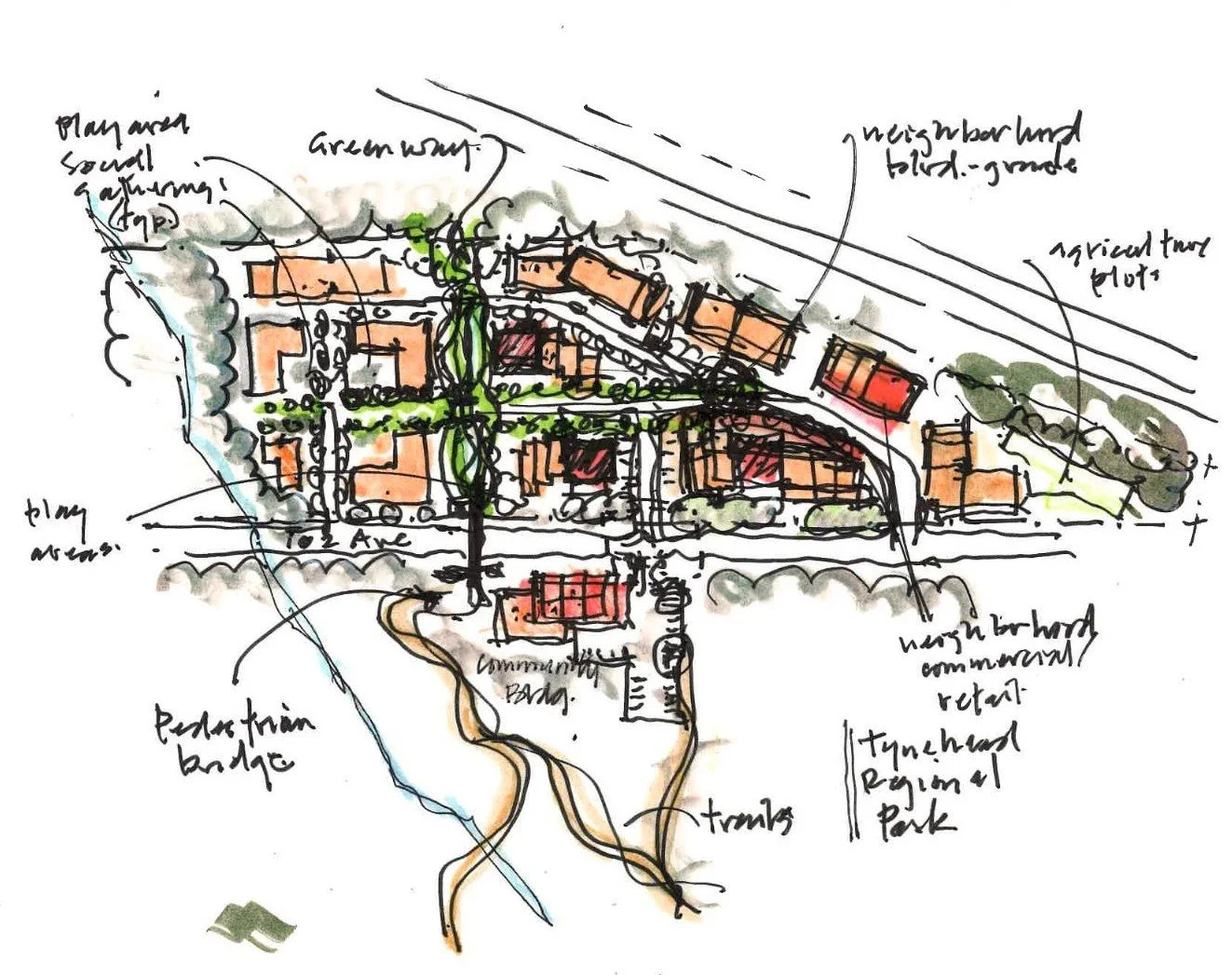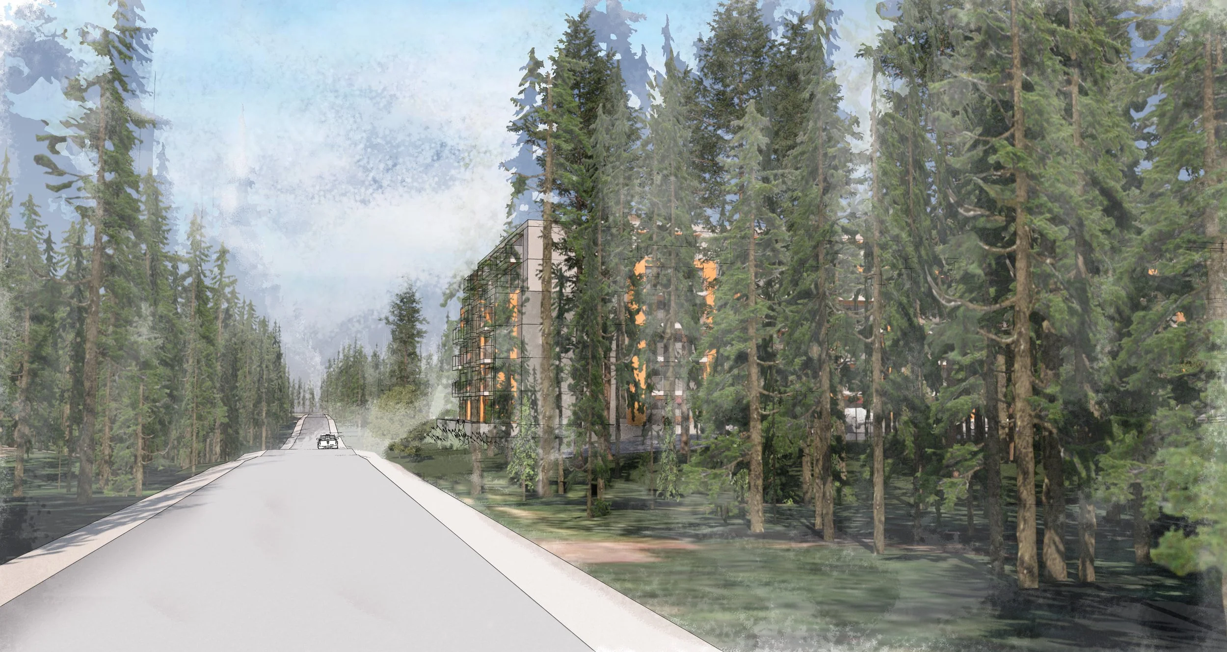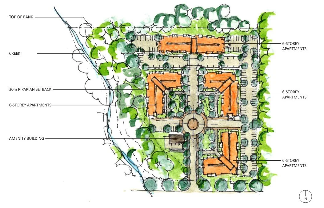 Formosis was retained to propose several possible scenarios to develop an approximately 323,000 sq ft site in south Surrey. The site is conveniently located near a Hwy 1 interchange and a major Regional Park. A grade separated pedestrian connection to the development was proposed to maximize the connection to this natural amenity.