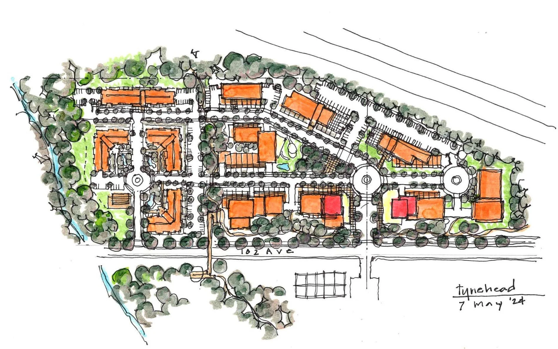 We explored a strictly townhouse scheme, a mixed townhouse and 4-storey scheme, a 6-storey scheme, and a higher density masterplan scheme with the potential of joining with the neighboring sites to present a broader community-based development.